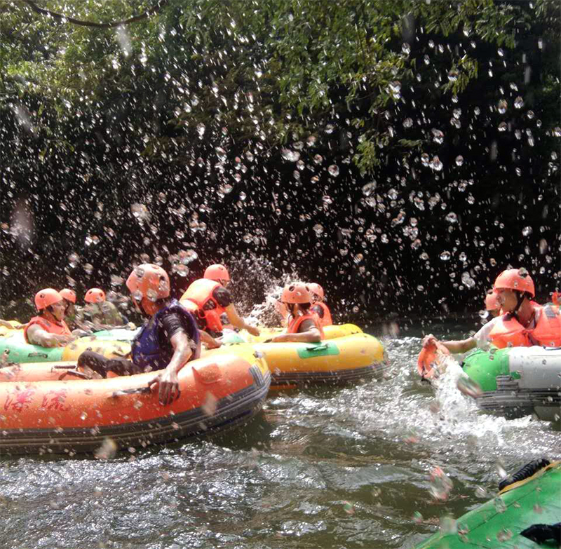 Set foot on the rubber boats, all can not wait to play the water, relive the child's childhood play, the river left everyone's string of laughter. Rubber boat down the river, the first half of the waterway gap is very large, continuous artificial slope, slope steep water emergency, kayak dive down, stirred a few meters high layers of spray, can not help people heart rate, Cold and happy share of pleasure and people hooked, but also aroused the desire of everyone torrent Yong Jin. The excitement of the drift seems to arouse everyone to recover the child's heart, the river in each other you catch me, once the encounter and ultimately to a battle of water. The splash of river water poured out the clothes, we are immersed in the unparalleled happiness. The second half of the river than the first half of a lot of calm, but soon this calm in the water war in the lively up. Cheers, screams in water, laughter, reverberating in the valley, reverberating into a symphony that is only happy to perform.